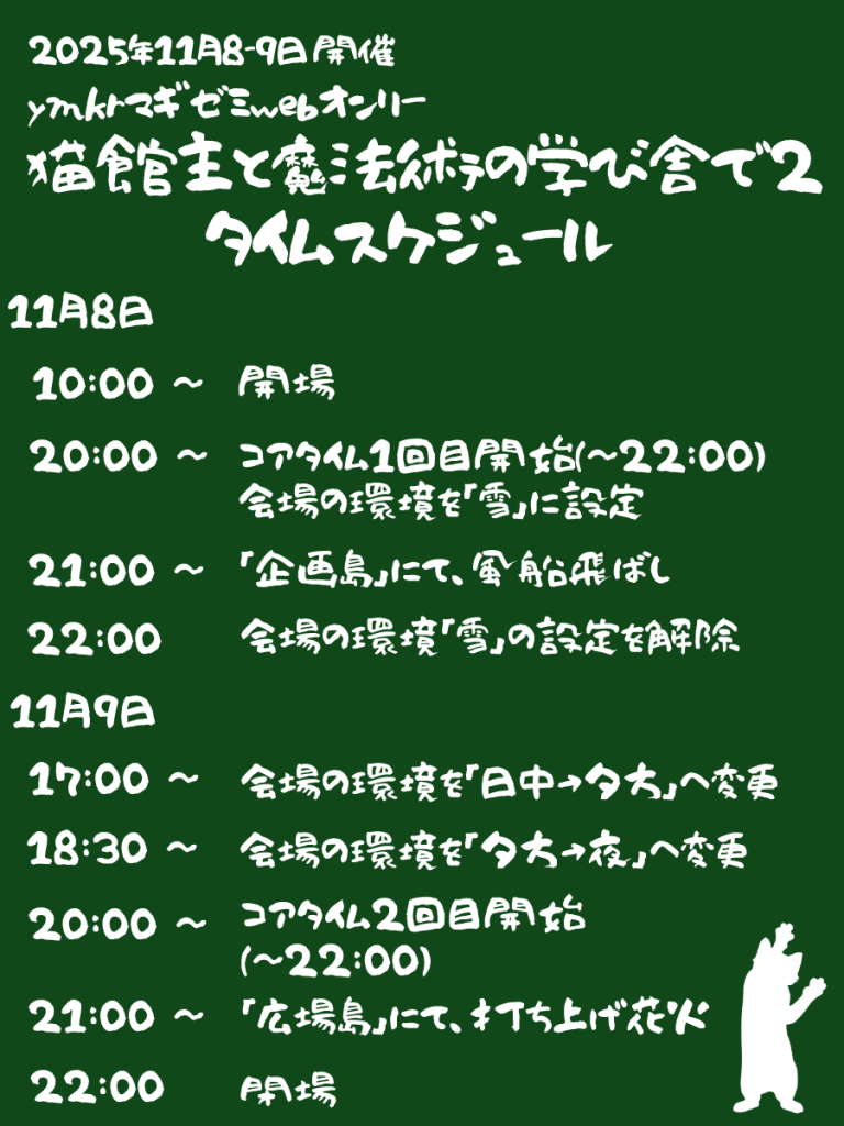 2025年11月8日~9日、とらのあなマルシェで開催されるymkrマギゼミwebオンリー「猫館主と魔法術の学び舎で【ねこびや】2」のイベント内企画をお知らせします。